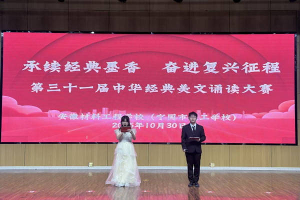 为深入贯彻党的二十大及二十届四中全会精神,响应习近平总书记“爱读书、勤读书、读好书、善读书”的时代倡议,把“增强中华文明传播力影响力”写入育人答卷,2025年10月30日,安徽材料工程学校团委组织开展以“承续经典墨香,奋进复兴征程”为主题的第三十一届中华经典诵读活动。