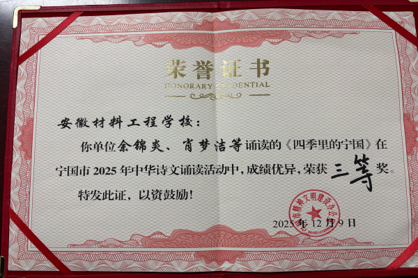 捷报传佳音,诵读润人心。在宁国市2025年中华诗文诵读比赛中,安材学校报送的作品《我在历史的褶皱里与巨匠对话》和《四季里的宁国》,以灵动的演绎、深厚的底蕴在众多参赛队伍中脱颖而出,分别荣获一等奖和三等奖。