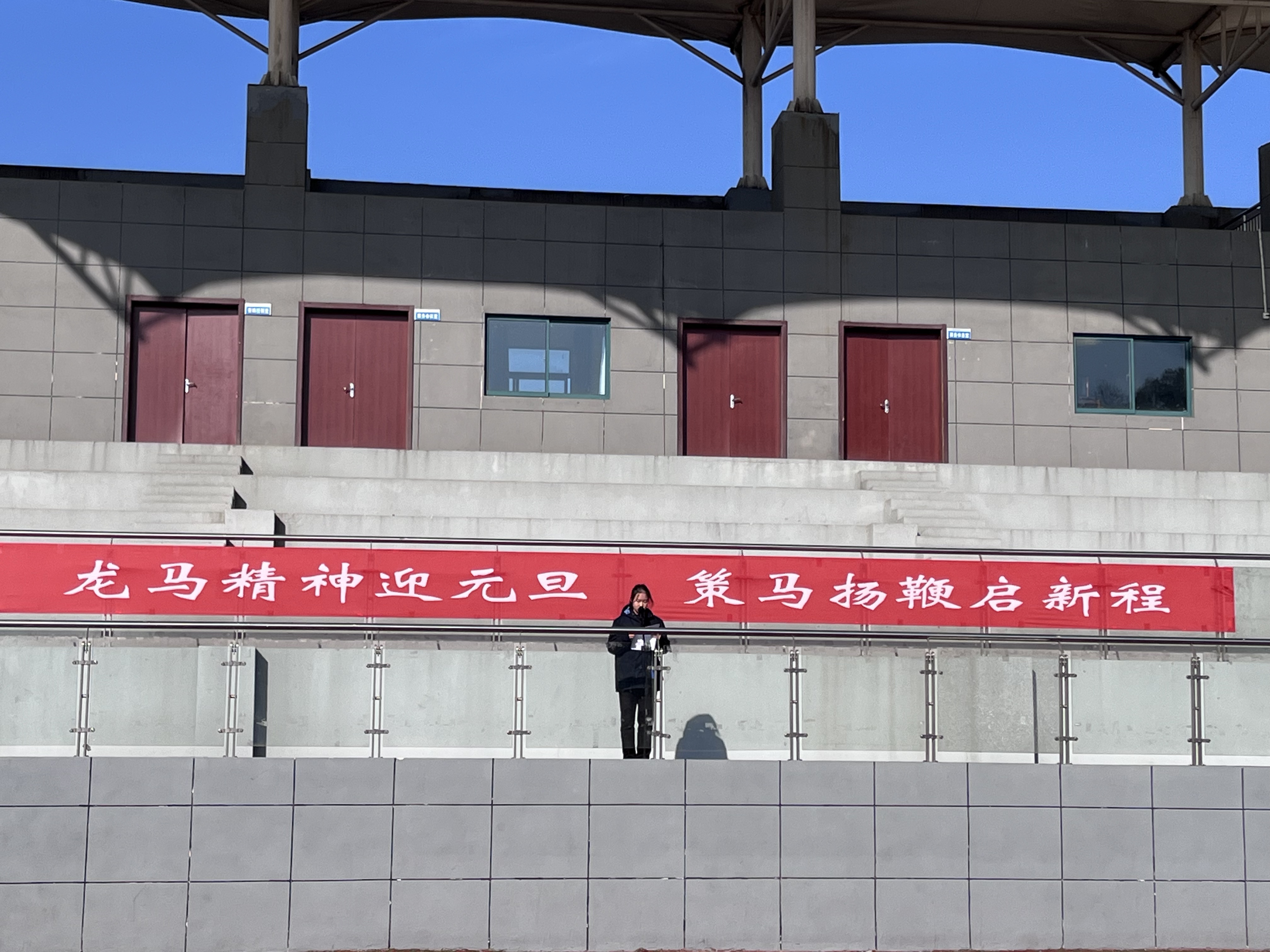 在庄严的升旗仪式后,学生代表刘梦炎同学以《以梦为马,喜迎2026》为题,分享了成长感悟,并从“梦想有方向、行动有力量、成长有温度”三方面发出倡议。