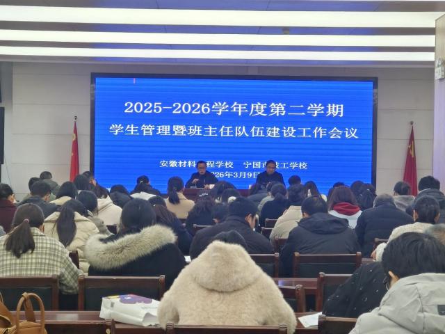 为扎实推进新学期德育与安全管理工作,筑牢校园安全防线,3月9日,安徽材料工程学校(宁国市技工学校)在图书馆立德学术厅召开学生管理暨班主任队伍建设工作会议。学校党委委员王贤清、学生处工作人员、各专业部德育负责人及全体班主任参加会议,会议由学生处副主任薛刚主持。