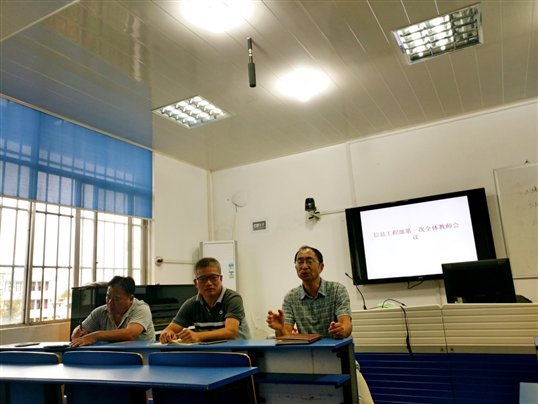 新学期,新气象,新展望,9月1日下午,安徽材料工程学校信息工程部在学校录播室召开新学期部全体教师会议。会议由信息工程部主任汪文平主持,校党委副书记、纪委书记程胜林,校督导室督导员周金辉参加了会议。