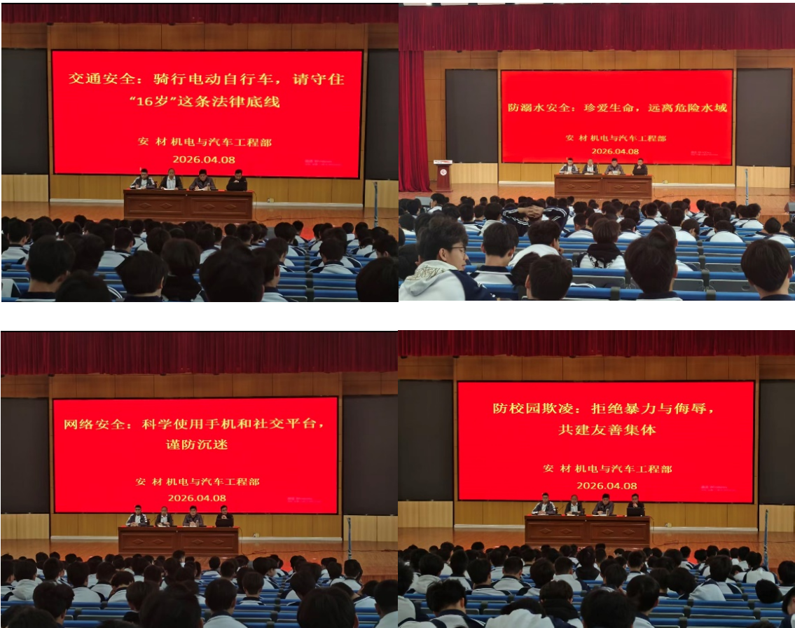 为进一步增强学生安全意识,筑牢校园安全防线,4月8日上午,机汽部召开学生安全教育专题集会。校工会主席汪传国,机汽部主任李红亮、副主任张家方及部分班主任、任课老师和全体学生参加会议。