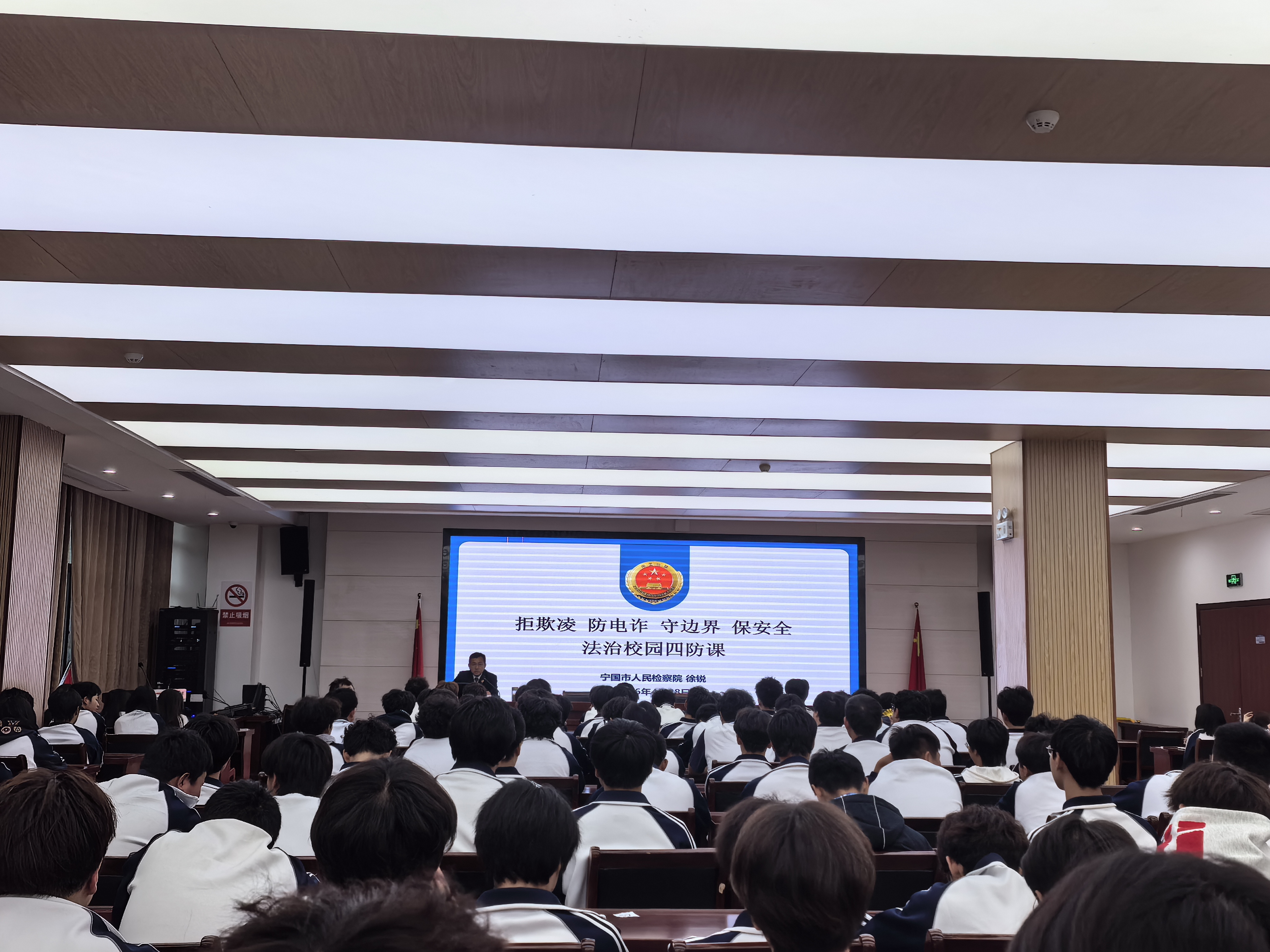 为增强学生法治观念,提升自我保护能力,4月28日下午,安徽材料工程学校(宁国市技工学校)特邀宁国市人民检察院开发区检察室主任、学校法治副校长徐锐走进学校,为在场师生带来了一场主题鲜明的法治教育讲座。