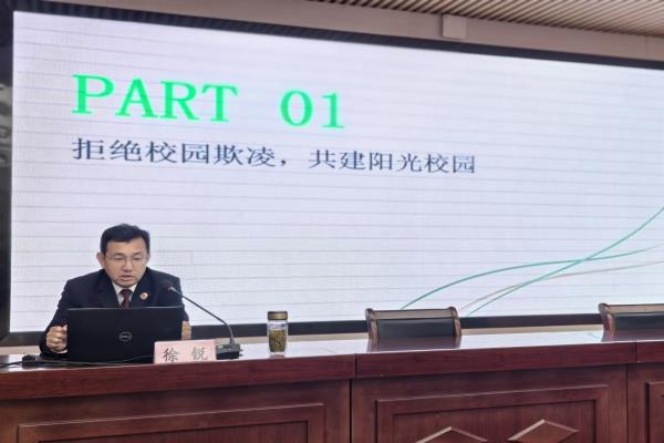 讲座中,徐锐从拒欺凌、防电诈、守边界三个方面进行宣讲。他首先通过真实案例明确了什么是校园欺凌,他指出欺凌行为会对受害者造成长期的心理伤害,而施暴者也将承担相应的法律后果。他强调,当同学们遇到欺凌时不要沉默、不要恐惧,要第一时间向老师、家长或警方求助,勇敢说“不”,同时不做冷漠的旁观者。