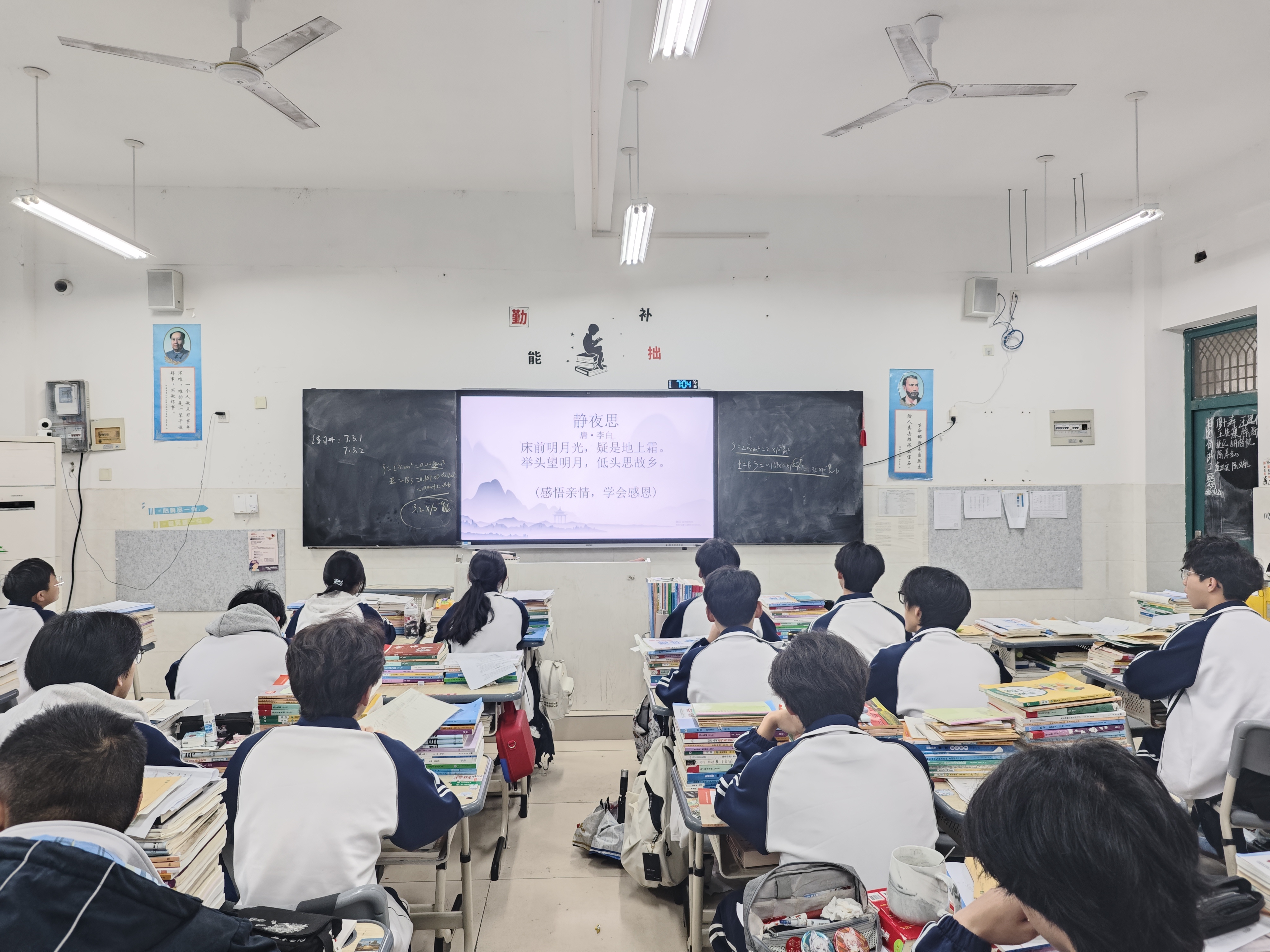 学校根据主题精心选编了每日诵读内容。4月23日“唐诗专场”中,同学们齐诵《静夜思》《春晓》《登鹳雀楼》等经典篇目,在“欲穷千里目,更上一层楼”的诗句中感悟励志奋进的力量;4月24日“宋词专场”,苏轼的《水调歌头》、柳永的《雨霖铃》以及《念奴娇·赤壁怀古》等名篇回荡在教学楼之中,同学们在婉约与豪放中体会情感的真挚与人生的豁达;4月25日“毛泽东诗词专场”,《沁园春·雪》《卜算子·咏梅》《七律·长征》更是将晨读推向高潮,“数风流人物,还看今朝”“待到山花烂漫时,她在丛中笑”等名句激发同学们的青春担当与坚韧品格。此外,学校还利用校园广播组织开展阅读分享专栏,让书香通过电波传递到校园每个角落。