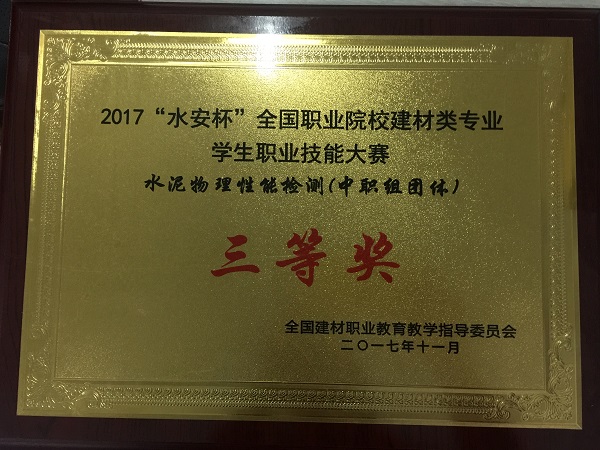 该次大赛作为由全国建材职业教育教学指导委员会主办的第四次全国性的比赛,于11月4日在安徽职业技术学院顺利开赛,共有来自全国各地的31所中高职院校参赛。我校选派的两只代表队分别参加了建材化学分析和水泥物理性能检测两个赛项的角逐,各队选手们分别经历了涉及两个专业的相关理论考试和水泥全分析、物理性能检测等实操比拼,从来自全国各地的选手中脱颖而出,喜获佳绩。