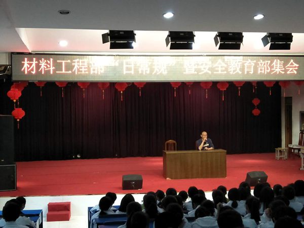 4月12日下午,为加强学生日常行为规范和安全教育,材料工程部在报告厅召开“日常规”暨安全教育主题部集会。活动由材料工程部副主任、党支部书记吴彬主持。