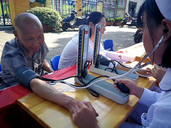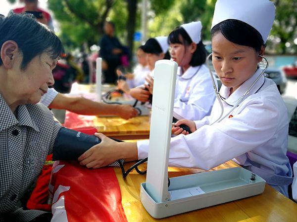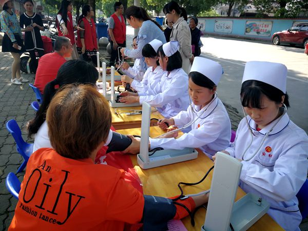 一个小时的活动中,将近有40人前来体验测量血压和体温,这些人中大都是社区里年迈的老人、清洁工人、接孩子的家长以及幼儿园的老师。6名志愿者是来自安徽材料工程学校材料工程部17护理专业的学生,她们细致入微地为群众们测血压、量体温,准确告知测量的结果,面对他们询问健康方面的问题,耐心地为他们解答,对有高血压的患者给出一些饮食建议和注意事项,体现出了新时代中职生青年的专业素养和奉献精神。