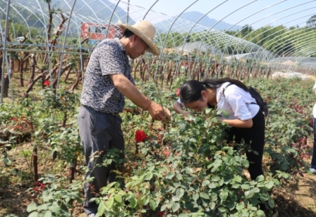 该公司黄总经理和陈副总经理非常热情地带领师生参观公司苗木基地,就月季各品种特征、月季育苗技术、月季修剪嫁接技术等分别做了详细介绍。全体师生参观了该公司月季育苗场地、学习并实际演练月季修剪嫁接技术。