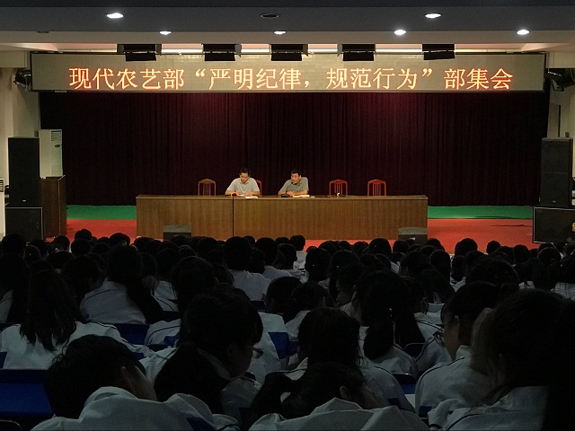 9月20日下午,现代农艺部召开“严明纪律,规范行为”部集会。现代农艺部副主任夏贤伟、德育干事黄佩枫、各班主任以及全体班级参加了会议,会议由夏贤伟主持,特邀校党委副书记、副校长魏先龙参加会议并作出重要讲话。