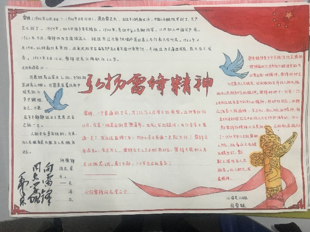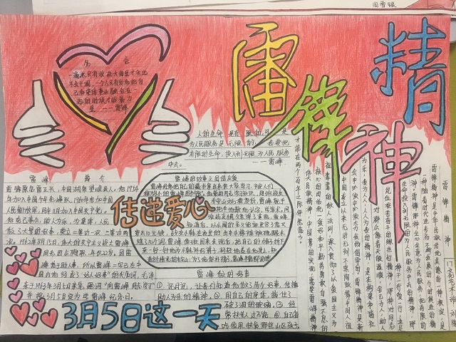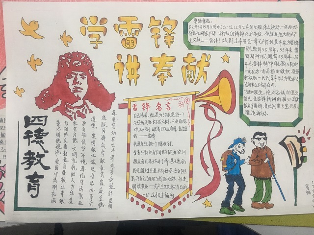 本次手抄报要求设计内容切合主题,突出雷锋精神。对此,各班学生积极认真对待,交出了一幅幅高质量的作品。