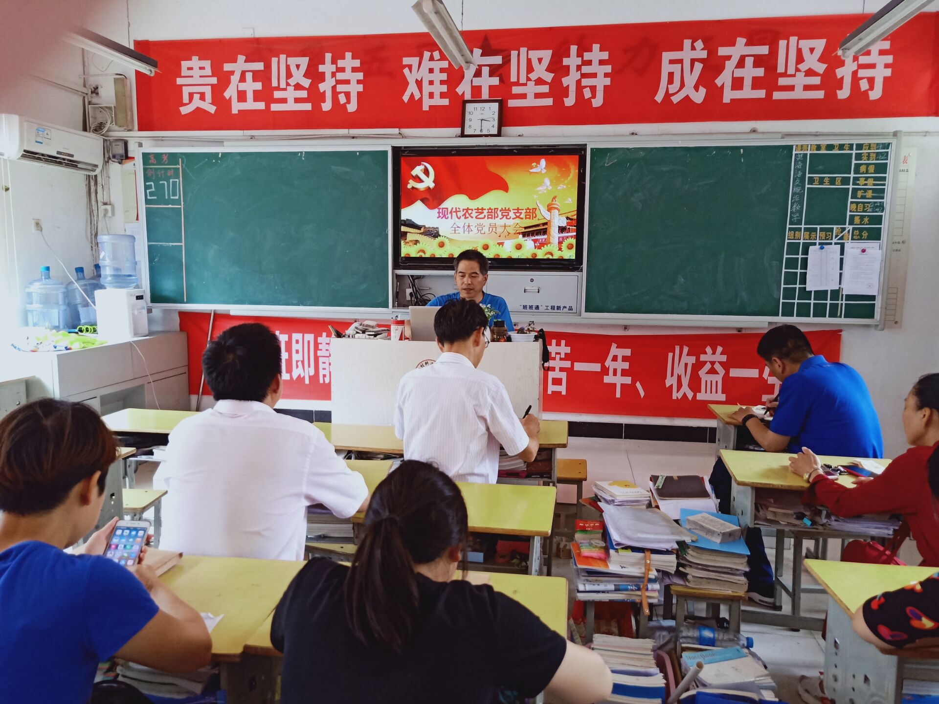 随着建党97周年的脚步临近,现代农艺部党支部在学校党委的统一部署下,举行庆祝“建党97周年”全体党员大会,大会于2017年6月29日下午在16旅游班教室举行,会议由党支部书记夏贤伟主持。