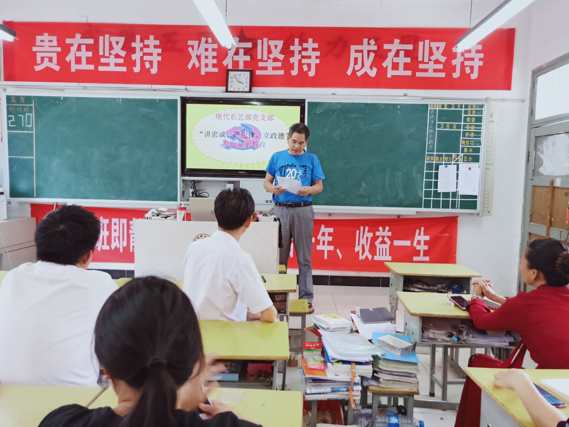 现代农艺部党支部于近日在学校16旅游班教室召开“讲忠诚,严纪律,立政德”专题警示教育活动。活动由现代农艺部党支部书记夏贤伟主持,现代农艺部主任倪金江参加本次专题警示教育活动。