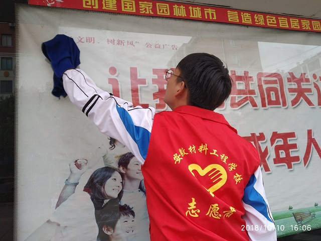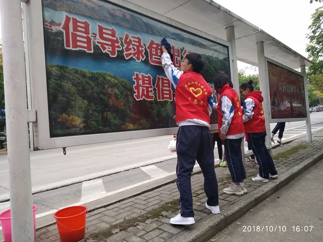 为强化青年学生思想道德素质和志愿服务精神,争做优秀志愿者,增强广大学生无私奉献的服务精神,争创和谐、文明的美好城市。安徽材料工程学校现代农艺部团总支于10月10(星期三)下午利用第三节劳动课,组织部分同学走出校门,开展了“美化环境、服务群众”为主题的清洁公交站台的志愿服务活动。