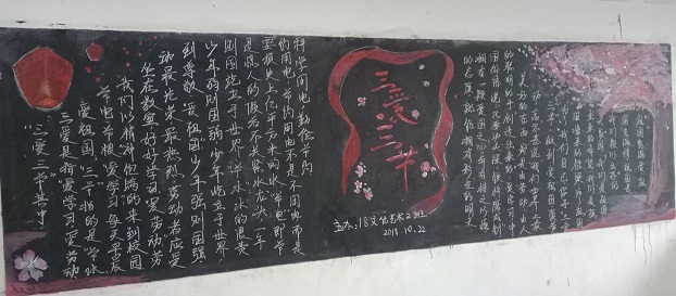 为贯彻习近平总书记向全国青少年提出的“爱学习、爱劳动、爱祖国;节水、节电、节粮”的号召,落实立德树人根本任务,全面实施素质教育,安徽材料工程学校按照上级要求,全面开展“三爱三节”主题黑板报评比活动。
